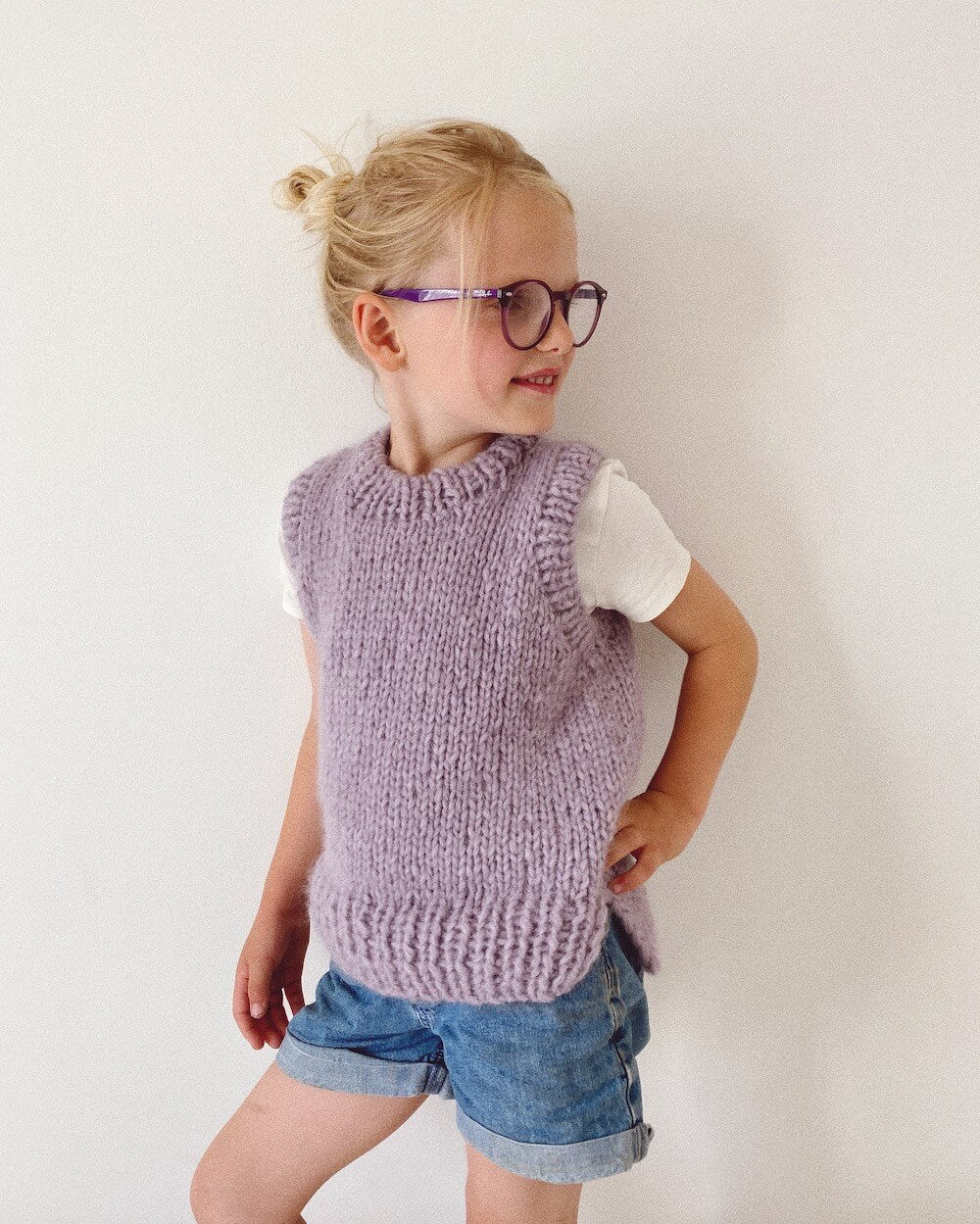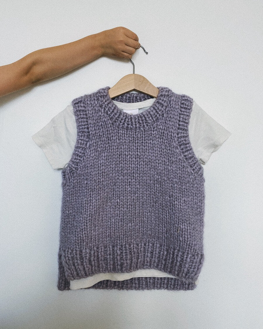 Holiday Slipover Junior strikkes oppefra og ned i glatstrik. Først strikkes rygstykket, så skuldre og forstykket og til sidst kroppen. Nederst på kroppen strikkes en todelt ribkant, hvor bagerste ribkant strikkes længere end forreste ribkant. Langs halsåbning og ærmegab strikkes der til sidst ribkanter, der afsluttes med italiensk aflukning eller tubular bind-off for et flot og færdigt udtryk.