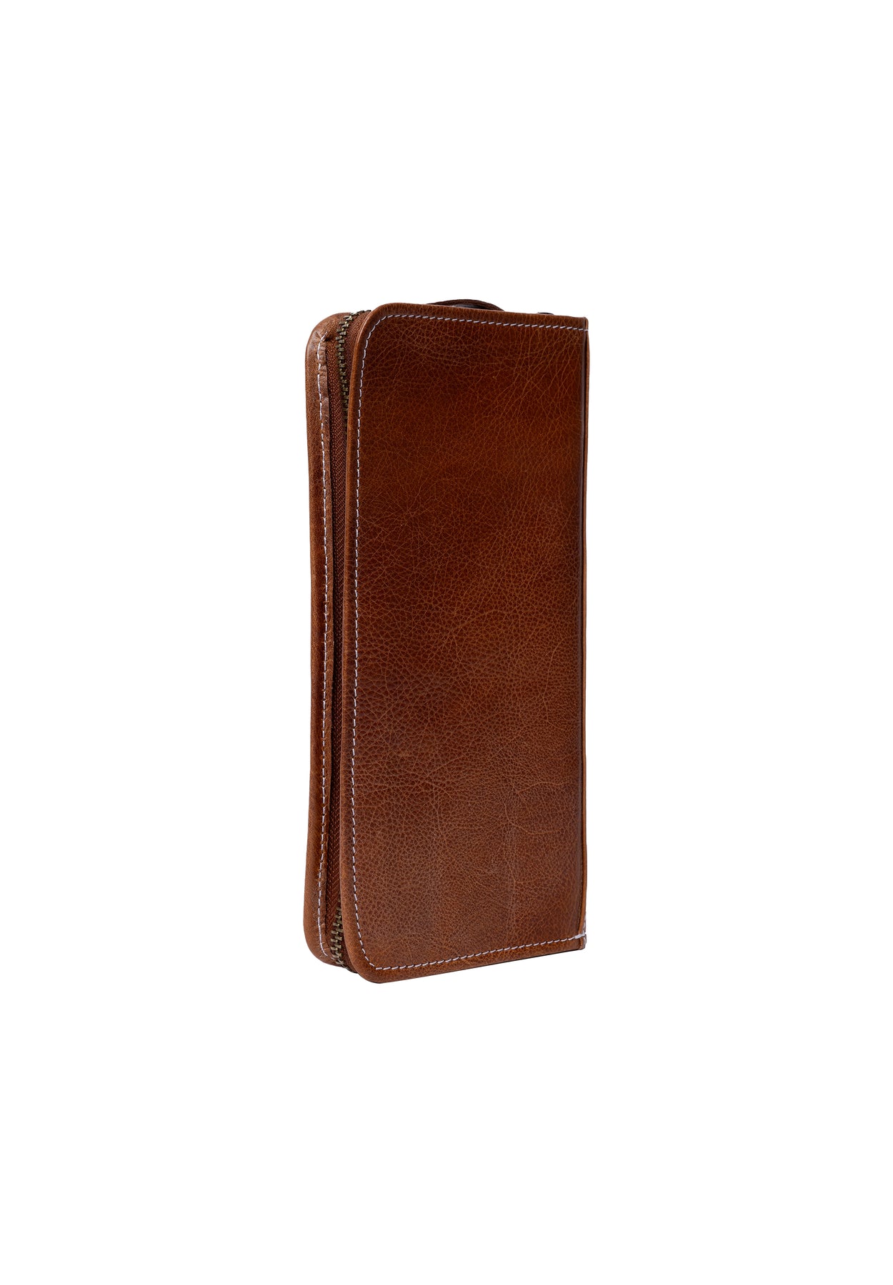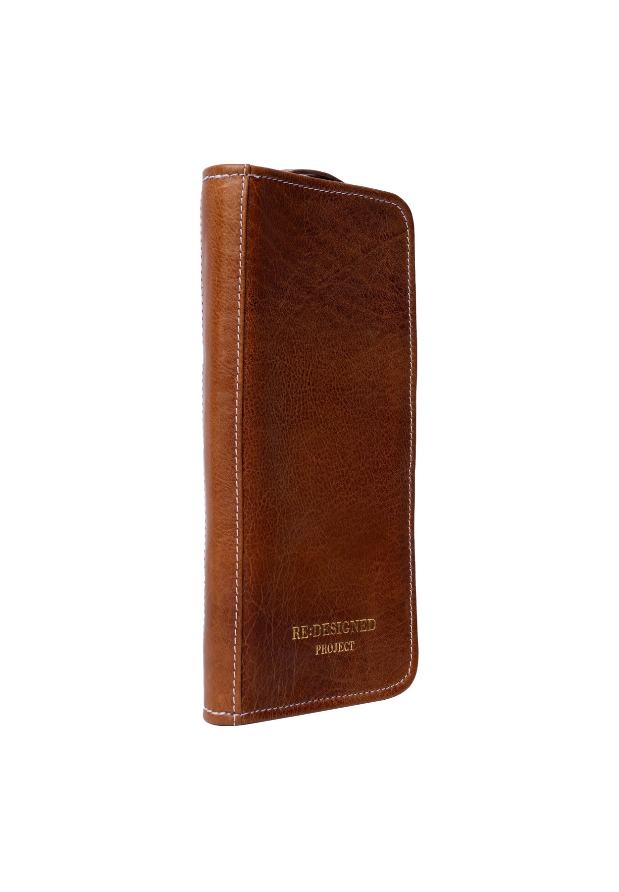 Project 102 er fremstillet i RE:DESIGNEDs Urban-læderkvalitet – naturligt indfarvet koskind, hvor læderets oprindelige struktur bevares. Hvert etui er unikt med sit eget udtryk, og den let voksede overflade giver en blød, eksklusiv finish i den varme Walnut-farve 🤎
