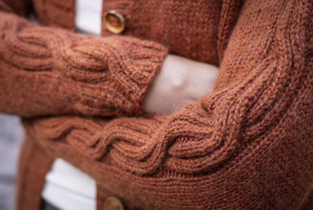 Nordic Waves The Cardigan er som Nordic Waves sweateren strikket oppefra og ned med sadelskuldre og de fineste ribbede snoninger ned af ærmerne.