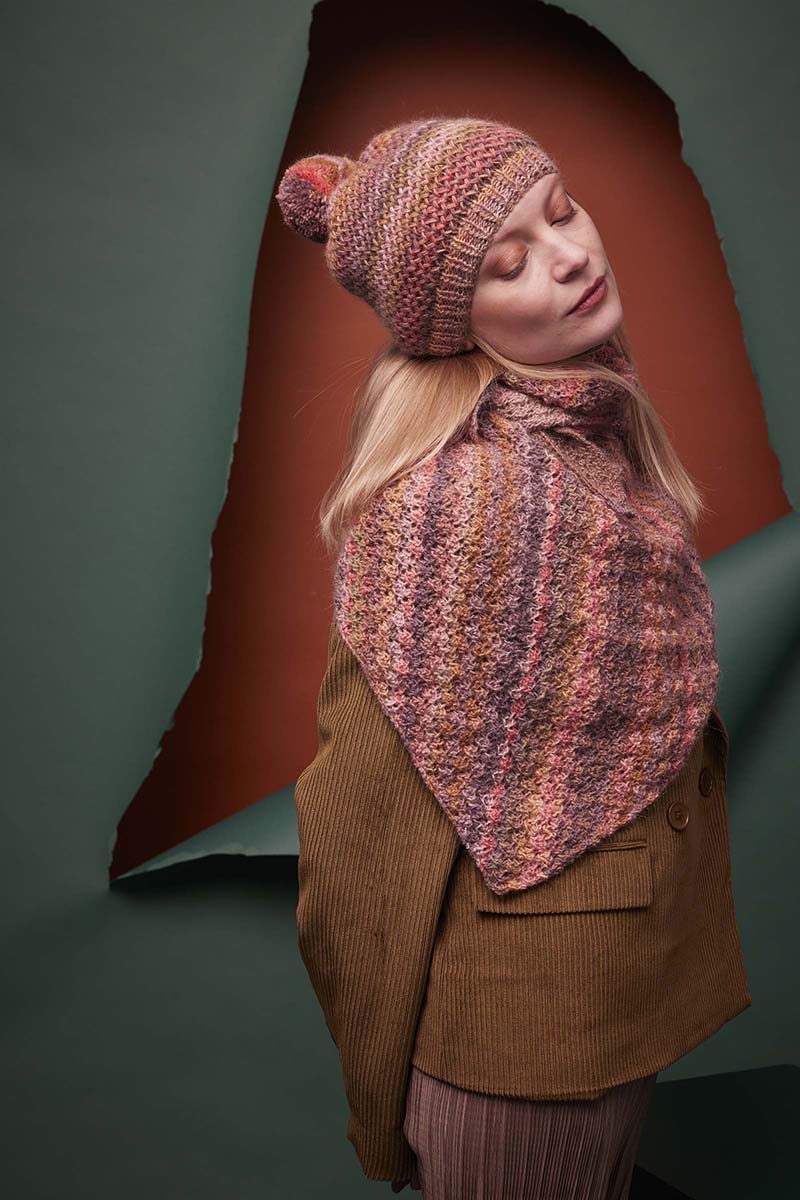 Dette smukke, luftige sjal er strikket i LANGYARNS AURORA, et eksklusivt garn af 100% baby alpaca, kendt for sin blødhed, varme og lette struktur. Med sin vidunderlige farvesammensætning i koral, brun, violet og oliven, får sjalet et levende, natur inspireret udtryk, der spiller smukt i lyset og giver et unikt farvespil til ethvert outfit. Du bestemmer naturligvis helt selv hvilken farve der falder i din smag, af de 6 farvestrålende varianter.