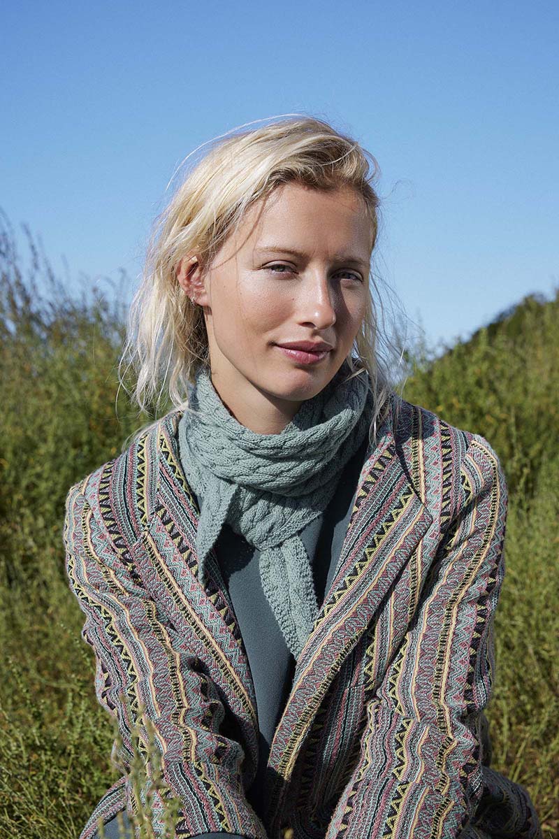 Konstruktionen formes ved løbende udtagninger, der nænsomt integreres i kabelmønsteret, så helheden forbliver elegant og strømlinet. Resultatet er et let, ultrablødt og tidløst sjal, der løfter enhver garderobe.