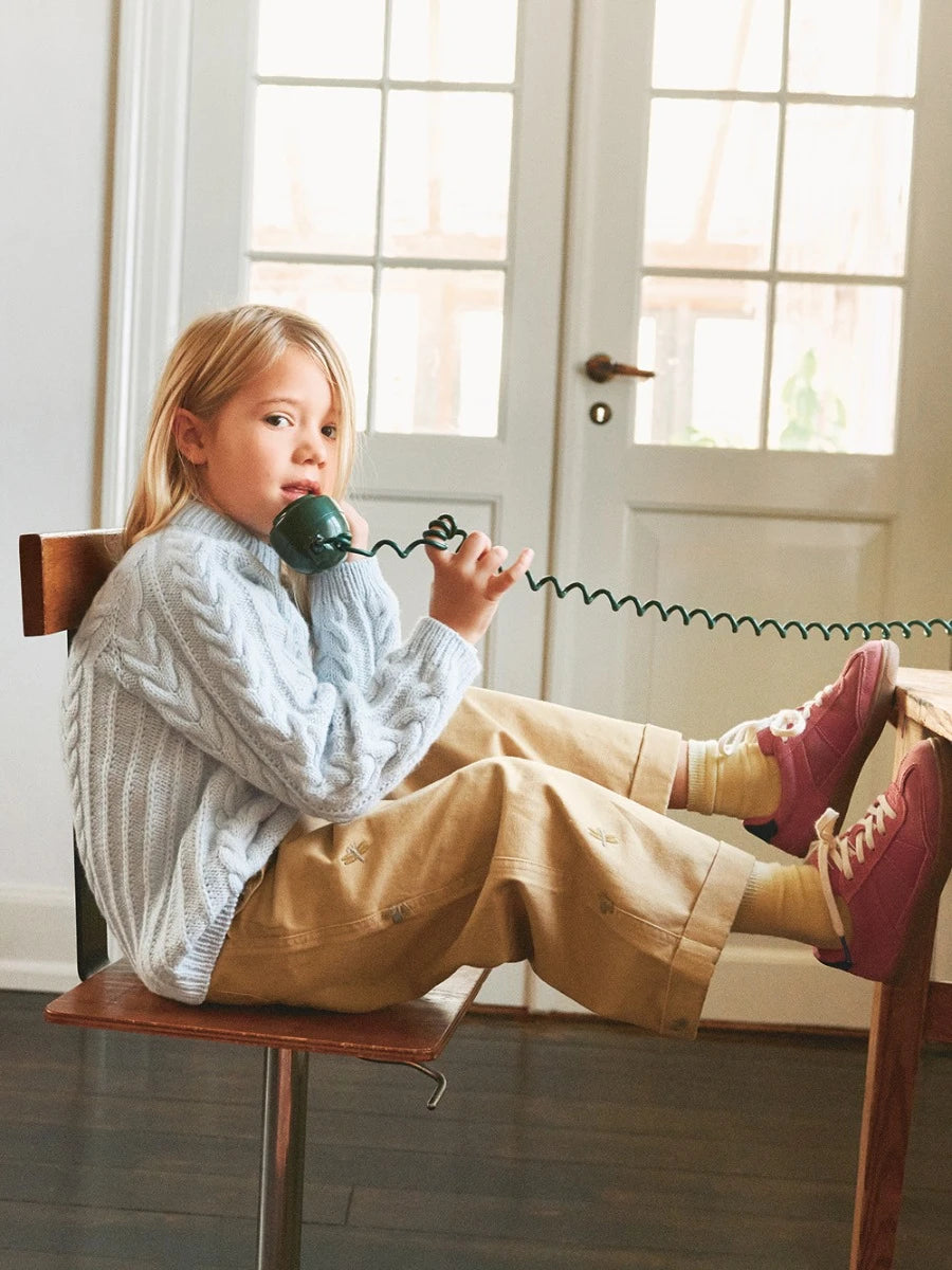 Klassisk børnesweater med snoninger. Nilo Sweater Junior strikkes ovenfra og ned med raglan i Double Sunday.